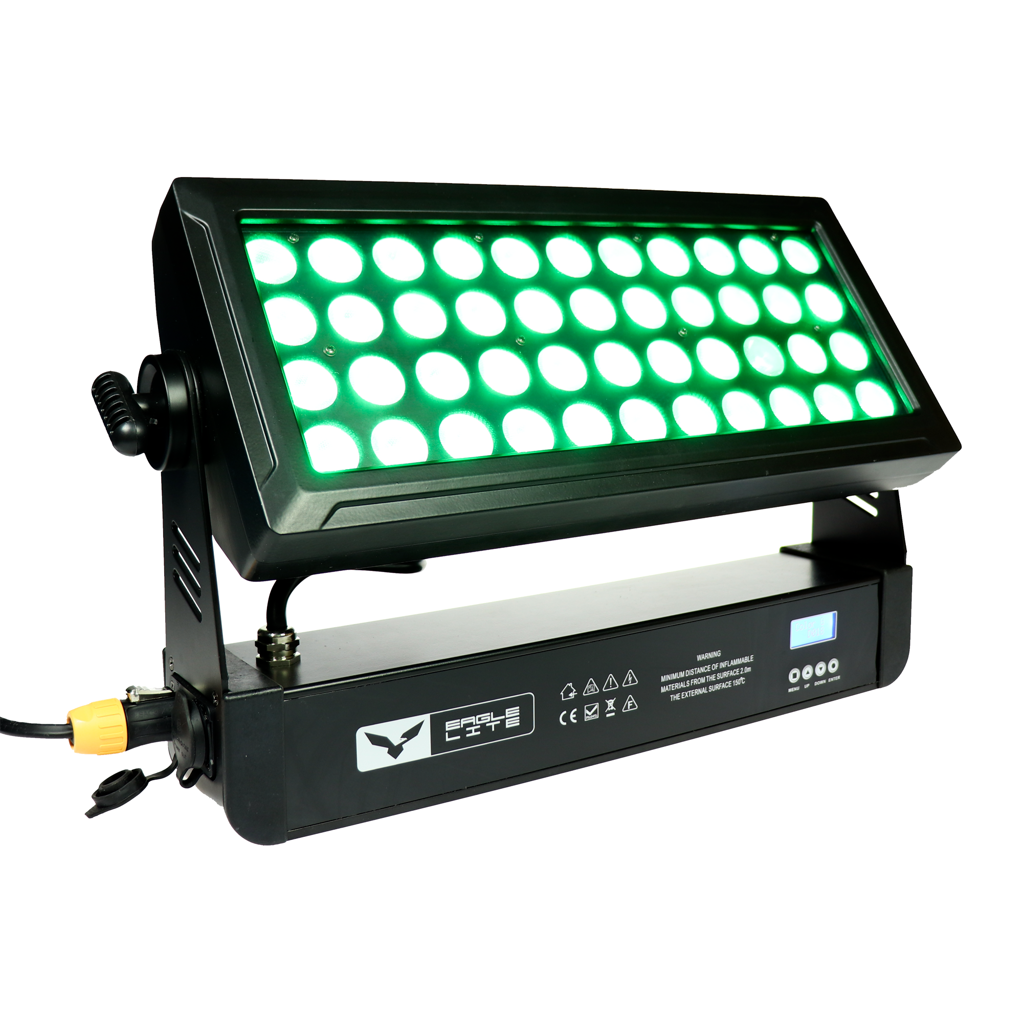 IPWALL-Q4415 er en Wall wash med 44X15W RGBW LED samtidigt med er lampen også IP65 klassificeret, dette betyder at udnyttelsesmulighederne er mange. IPWALL-Q4415 har monteret 44 meget kraftige 15W LED som gør at du kan opnå et meget stort lys udbytte.