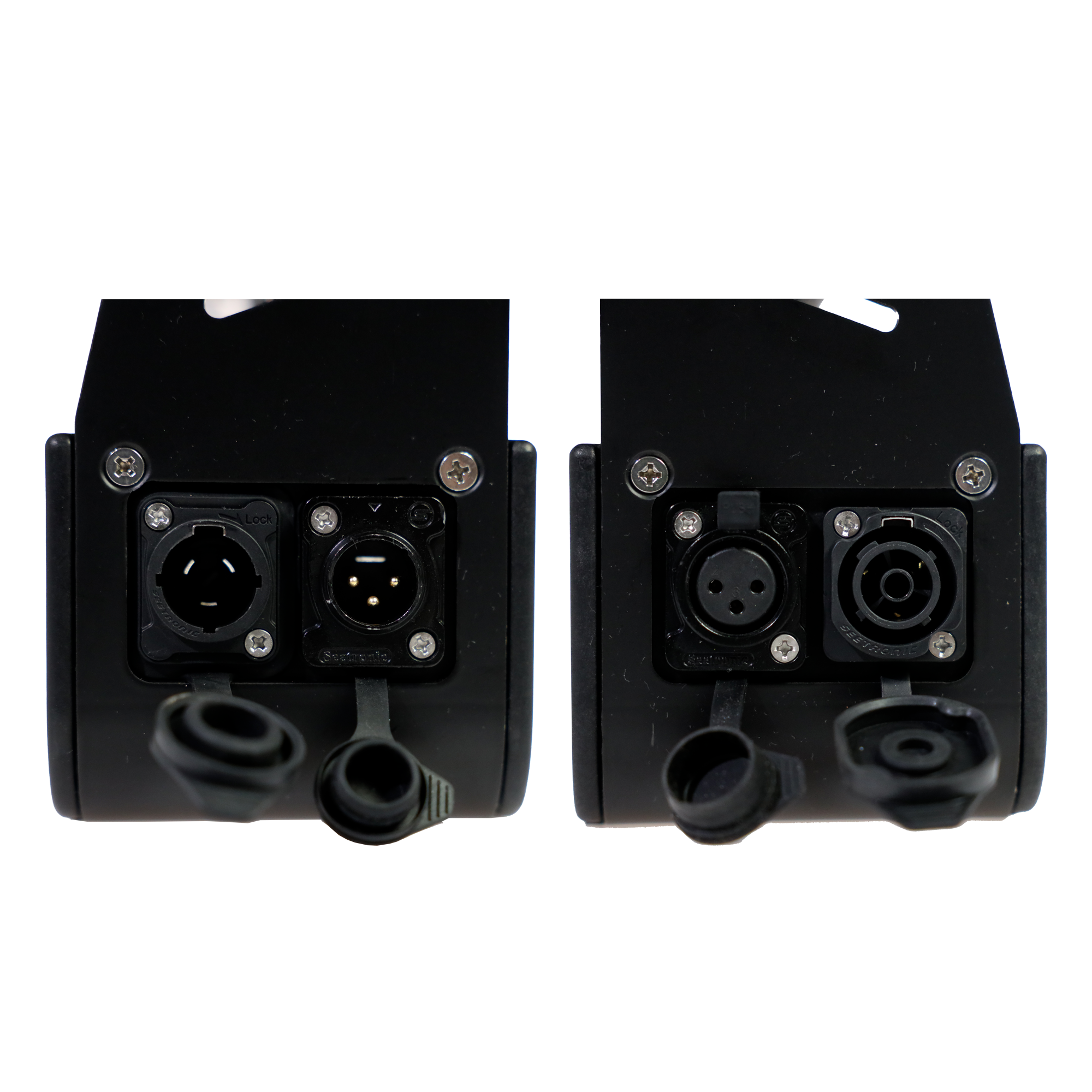Den har Truecon TR1 ind og ud, samt IP65 DMX3Pin Ind & ud, det betyder også at du altid har mulighed for at linke videre til den næste uden problemer.