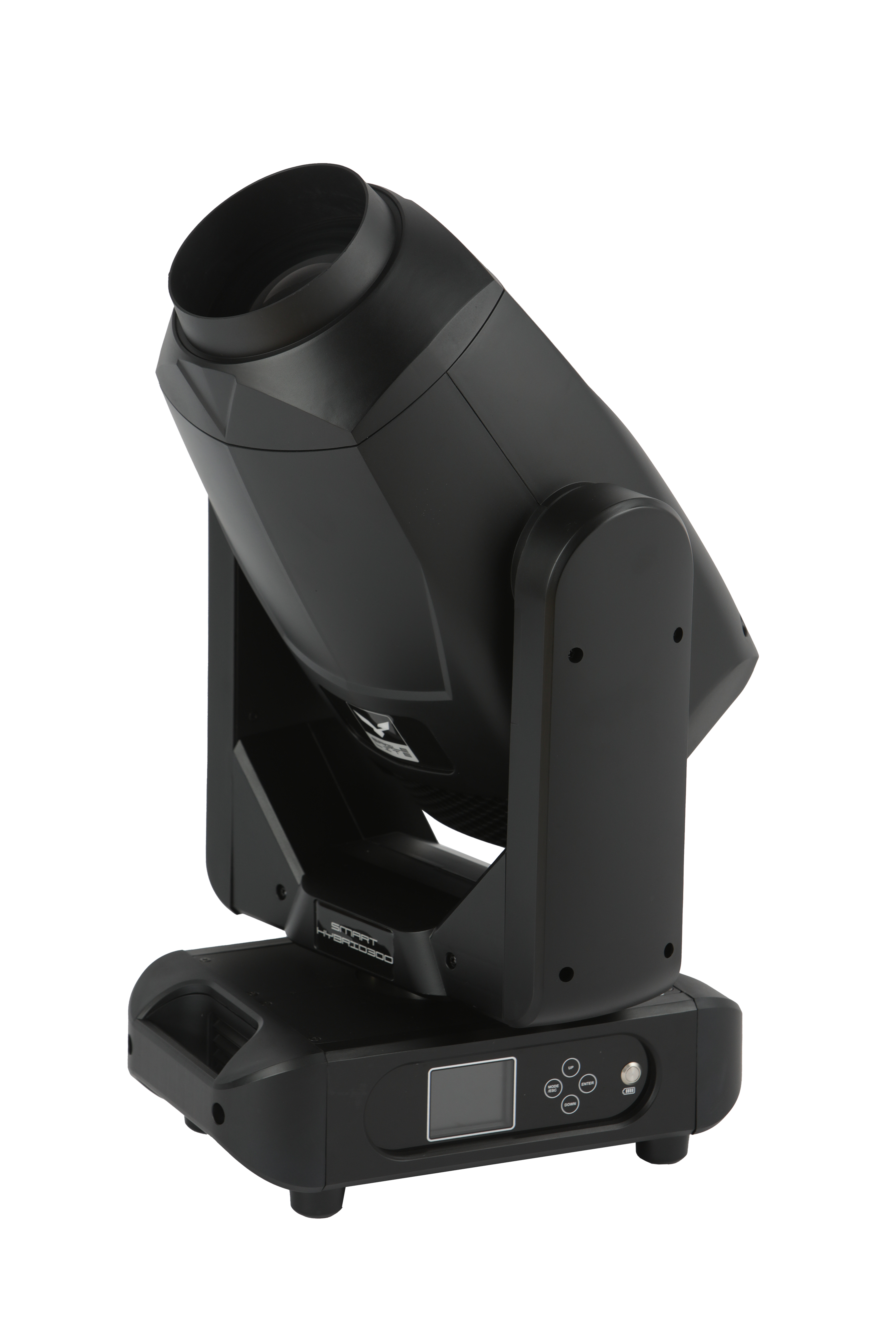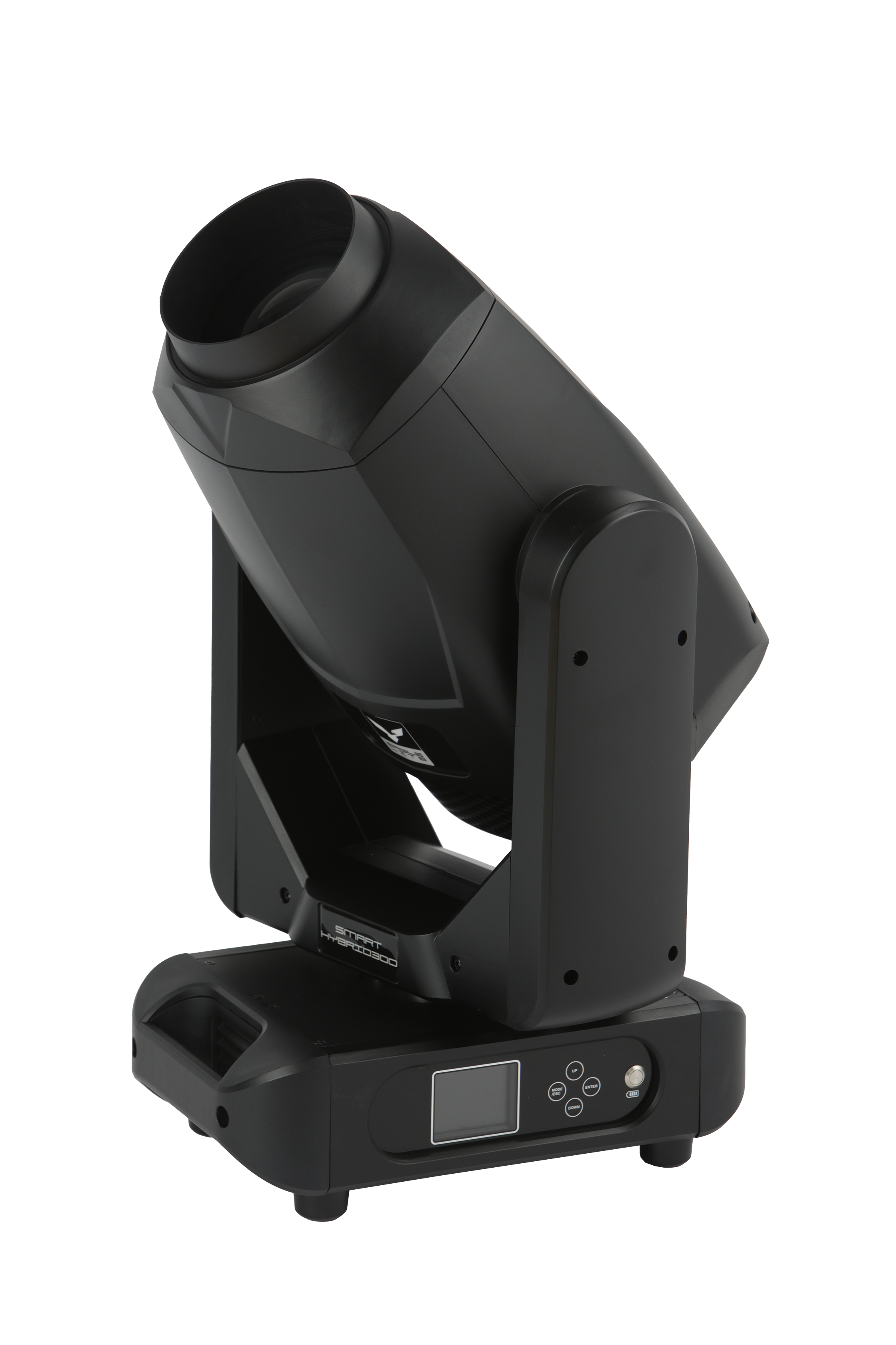 SMART HYBRID300 er udstyret med en kraftfuld 300W LED-lyskilde med en farvetemperatur på 6700K, der leverer skarp og intens Kegle. HYBRID300 har CMY knive, farvehjul, roterende goboer, en 8-facet prisme, Motoriseret Iris, frostfilter og motoriseret zoom.