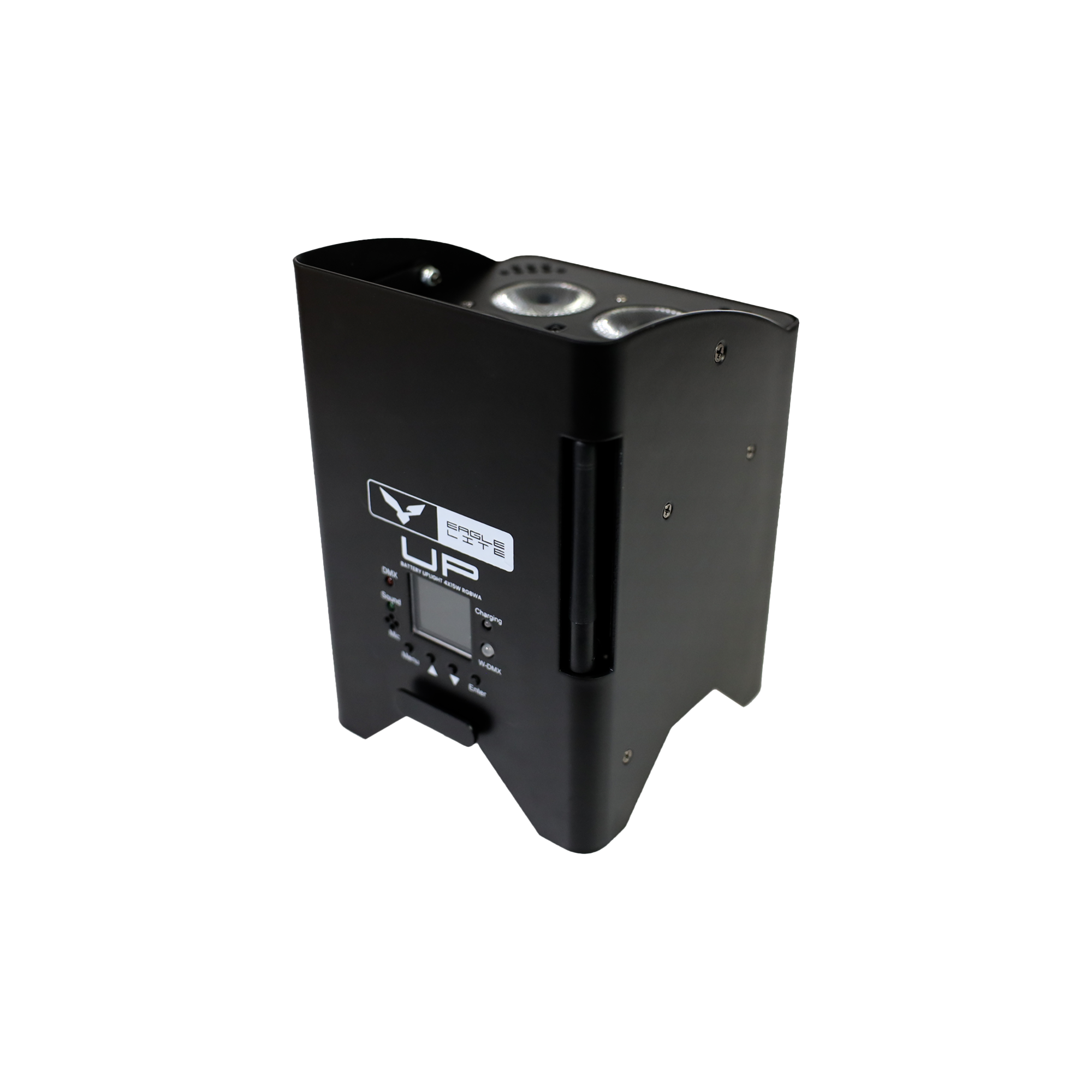 6 × UP uplights (4×15 W RGBWA) + 1 × Charging Case